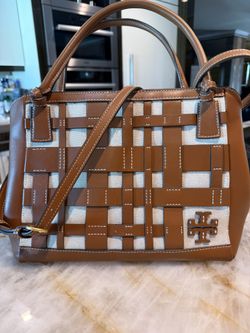 Tory Burch Woven Leather & Canvas Satchel Handbag — Brown$180Pompano Beach, FL