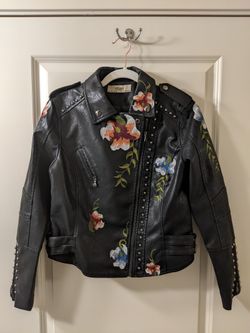 Floral-Embroidered Black Faux-Leather Jacket$80Renton, WA
