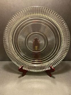 Vintage Round Crystal Glass Serving Platter, 12-1/4" in diameter, Beautiful Pattern, Antique. $10Lomita, CA