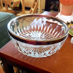 Vintage Leonard Crystal Serving Bowl <> 9” Dia. Made in Italy <> Silver Rim & Heavy Glass <> 1960s Mid Century