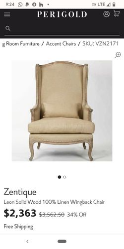 PRICE REDUCED** Perigold French High back Linen Chair$700San Antonio, TX