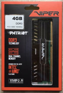 Viper Patriot Memory 4GB DDR3 PC3-12800 1600 MHz Memory$20Buena Park, CA