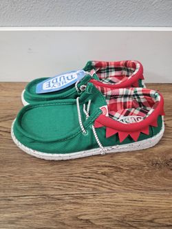 Hey Dude Wally Y Holiday Elf Christmas Shoes Loafers Green/Red Size J2 Big Kid 2$40Manteca, CA