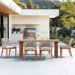 New Heavy Duty PURPLE LEAF 7 Pieces Dining Set Patio Metal Rectangular Table and Wicker Rattan Chairs for Outside Porch Garden Kitchen Modern Outdoor $850La Mirada, CA