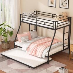New Twin Over Full Bunk Bed with Trundle, Metal Loft Bed with 2 Safe Ladders, Trundle Bed with Safety Guard, Space Saving, Noiseless for Small Bedroom$150La Mirada, CA