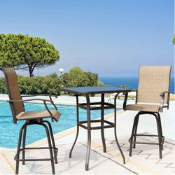 New Heavy Duty Set of 3 Patio Dining Sets Swivel Chairs, All Weather Textilene Mental Swivel Chairs, Set of 2 Chairs and High Glass Bar Table, High To$170La Mirada, CA