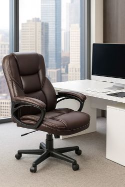 New Heavy Duty Office Executive Chair High Back Adjustable Managerial Home Desk Chair, Swivel Computer PU Leather Chair with Lumbar Support (Brown) N$80La Mirada, CA