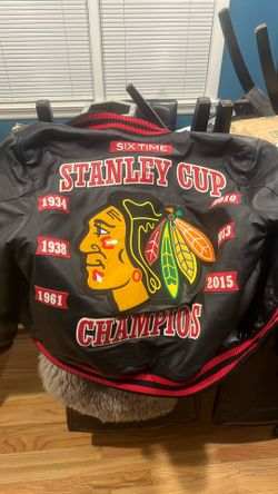 JH DESIGN CHICAGO BLACKHAWKS 6 TIMES STANLEY CUP CHAMPIONS LEATHER JACKET$3,000Bedford Park, IL