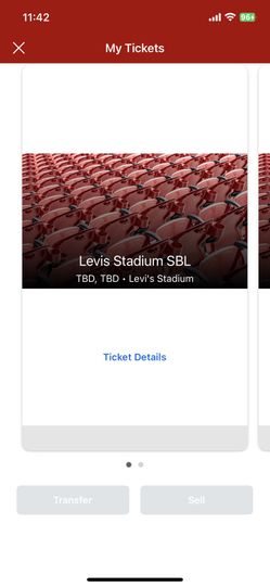49ers Levi Stadium SBL’s Section 121 Row 28$2,100Hayward, CA