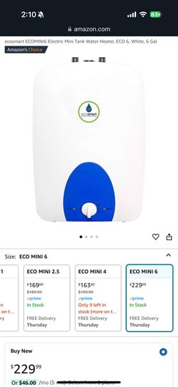 ecosmart ECOMINI6 Electric Mini Tank Water Heater$150San Lorenzo, CA