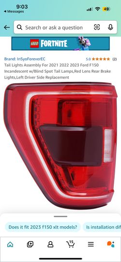 Tail Lights Assembly For 2021 2022 2023 Ford F150 Incandescent w/Blind Spot Tail Lamps,Red Lens Rear Brake Lights,Left Driver Side Replacement$50El Monte, CA