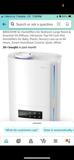 BREEZOME 6L Humidifiers for Bedroom Large Room & Essential Oil Diffuser, Ultrasonic Top Fill Cool Mist Humidifiers for Baby, Plants, Nursery Last up t$20El Monte, CA