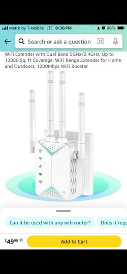 WiFi Extender with Dual Band 5GHz/2.4GHz, Up to 12880 Sq. ft Coverage, WiFi Range Extender for Home and Outdoors, 1200Mbps WiFi Booster$45El Monte, CA