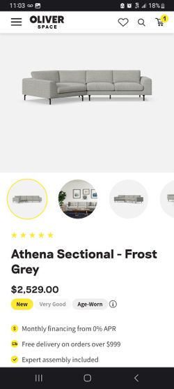 Athena Sectional Frost Grey Brand New Oliver via Space Sofa Couch $1,100Laveen Village, AZ