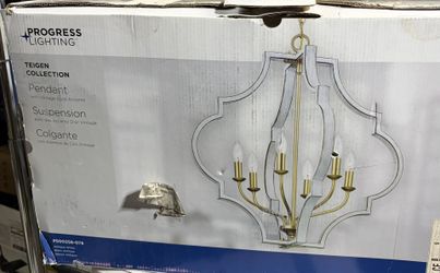 Progress Lighting | Teigen 6 -Light Vintage Gold with Antique White Transitional Geometric Large Hanging Chandelier $140Chula Vista, CA
