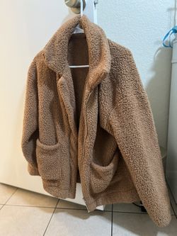 Brown teddy sherpa zip-up coat. Oversized Small$20Bakersfield, CA
