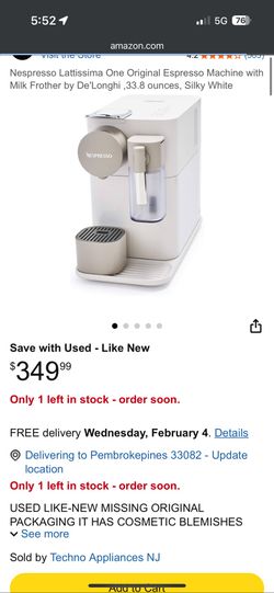 Nespresso Lattissima One Espresso Machine – Like New$350Hialeah Gardens, FL
