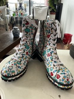 Socofy Women Cartoon Printing Pattern Leather Boots Comfy Lace-Up$50Los Angeles, CA