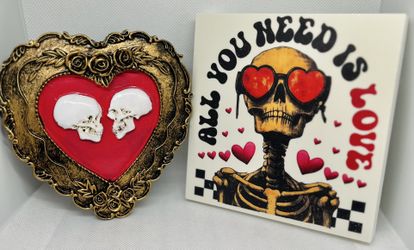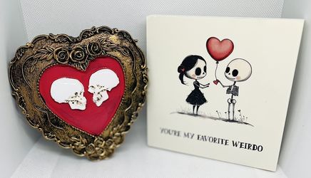 2x Goth Spooky Valentine’s Day Gift (Two pieces) Resin Heart 4.72” & Skull Table Top Decor 5” Cute Present Horror$25Moreno Valley, CA