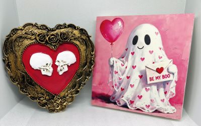 2x Goth Spooky Valentine’s Day Gift (2 pieces) Resin Heart 4.72” & Ghost Table Top Decor 5” Horror Gothic Spooky Cute Gifts $25Moreno Valley, CA