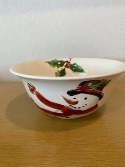MAXCERA Holiday Winter Top Hat Snowman 9-1/2 Medium Serving Bowl Centerpiece$15Clovis, CA