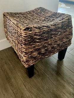 Square Woven Seagrass Ottoman With Dark Wooden Legs$30Clovis, CA