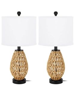Coastal Table Lamps Set of 2, Retro Rattan Woven 24" Bedside Lamp, for Bedroom Living Room Home Nightstand Table Lamp(with USB C+A 5V 2.1A Charging Po$35Snellville, GA