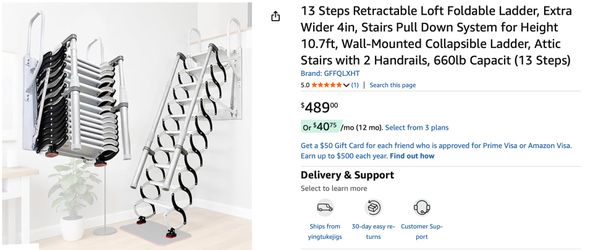 13 Steps Retractable Loft Foldable Ladder, Extra Wider 4in, Stairs Pull Down System for Height 10.7ft, Wall-Mounted Collapsible Ladder, Attic Stairs w$250Katy, TX