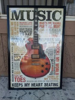 Guitar Poster, Framed With Plastic Glass, 36" X 24" Great Gift For A Guitar Player Or Beginner $10Chandler, AZ