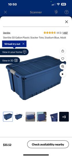 Sterilite 50 Gallon Plastic Stacker Tote, Stadium Blue$25Oak Glen, CA
