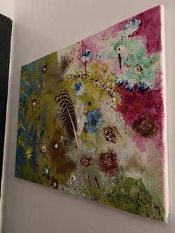 Abstract Colorful Real Feather Painting On Canvas $50North Miami Beach, FL