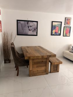 Rustic Dinner Table With Chairs And Bench $700North Miami Beach, FL