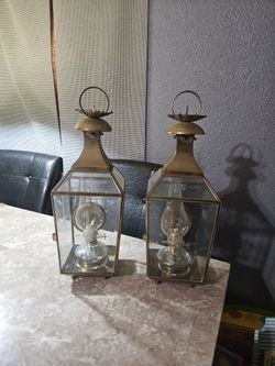 1940s Vintage Brass Yuksel Lambalari Turkish Shepherd Oil Lanterns Light Etched Glass$145Round Rock, TX