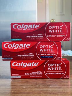 Colgate Optic White Stain Fighter Whitening Toothpaste, Fresh Mint/Clean Mint/Anticavity Baking Soda$2Anaheim, CA