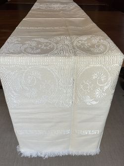 Handmade Greek Ivory Damask Embroidered Tablecloth/Bed Runner, NEW$40San Diego, CA