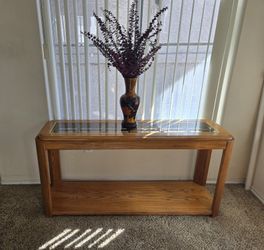Glass Top Wooden Console Table with Vase$50Scottsdale, AZ