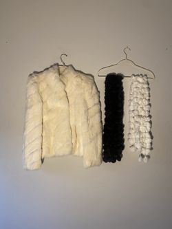 Chosen Furs Ladies Natural Rabbit Fur Cost Off White Jacket Sz Small, 2 Rabbit Fur Scarfs$115Anaheim, CA