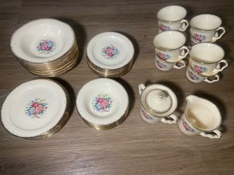 Vintage Laurella Universal 40 Pieces 22Karat Gold Trim Floral Dinnerware USA $175Anaheim, CA