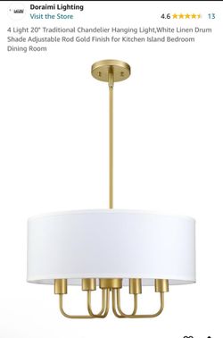 20” Traditional Chandelier - 4-Light Gold Finish with White Linen Shade, Adjustable Rod$80North Las Vegas, NV