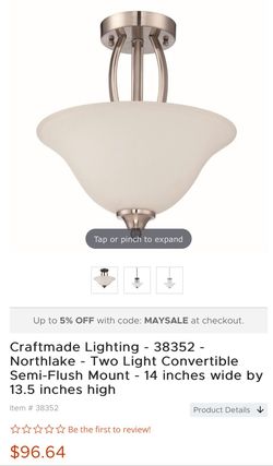 Craftmade Northlake 2-Light Semi-Flush Convertible Ceiling Light - Brushed Nickel, 14” Wide$35North Las Vegas, NV