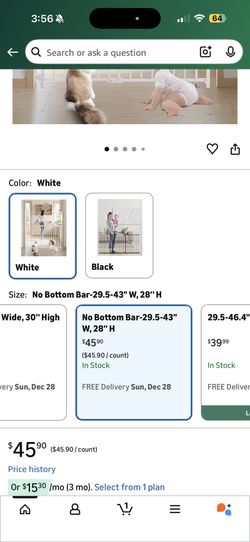 Baby & Pet Safety Gate – Adjustable 29.5–43 in., White$20Phoenix, AZ