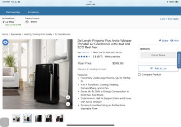De’Longhi Pinguino Plus AC !Cools+Heats! + 700SF!)$249San Diego, CA