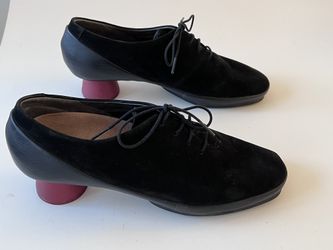CAMPER Brand Women’s 40/9 Black Suede + Leather Shoes with Red Rubber Heels$45San Diego, CA