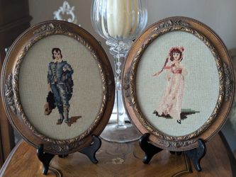 Heirloom Quality Vintage Pinkie & Blue Boy Handcrafted Needlepoint Framed Set~12" Tall 1950's$90Anaheim, CA