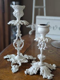 Beautiful White Vintage Cast Iron Candle Holders~Rococo Style$30Placentia, CA