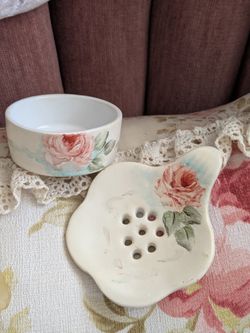 Vintage Porcelain Tea Strainer With Receptacle~Hand Painted Roses~Mid Century$30Anaheim, CA