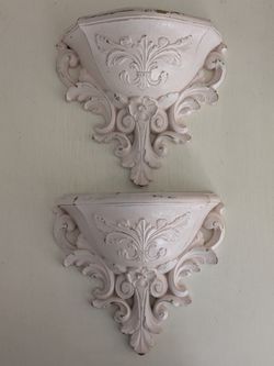 Gorgeous Set Of Vintage Blush Pink Wall Pocket Planters(2)~French Rococo Raised Floral Designs$40Placentia, CA