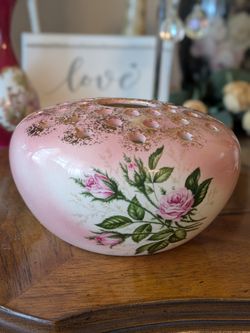 Vintage Lrg. Porcelain Flower Frog Vase~Hand Painted Roses, Gold Accents, 36 Stem Holes~Mid Century$50Anaheim, CA