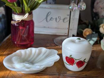 Vintage Avon Heavenly Milk Glass Dish + Bartlett Collins Milk Glass Hand Painted Strawberry Jar MCM$20Anaheim, CA