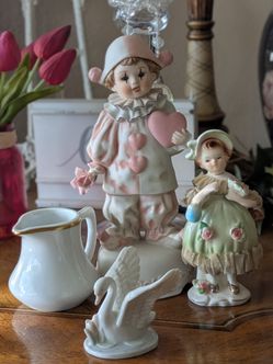 Lot of 4 Vintage Collectables~Enesco Clown, Arnart Lady Figurine, White Porcelain Creamer & Swan$30Anaheim, CA